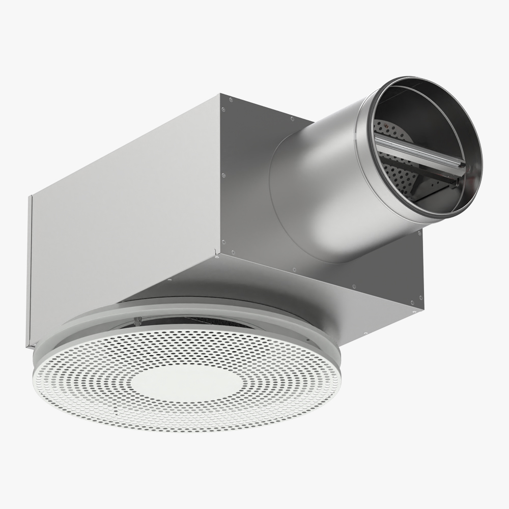 The NAPT is a circular supply air diffuser featuring a perforated front plate and a back section with a spigot air connection. Due to its efficient ventilation properties, the NAPT is suitable for a wide range of applications. Designed for ceiling mounting, the diffuser can be directly installed into an air duct system or connected to a TK commissioning box. This setup ensures uniform and balanced airflow to the diffuser. The maximum recommended temperature difference (Δt) for optimal performance is 10 °C.
