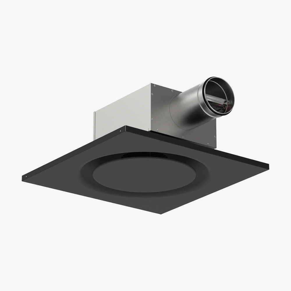 The PLI is a square ceiling-mounted supply air diffuser designed for flush installation in modular false ceiling systems. It is intended for use in offices, schools, healthcare facilities, and other similar indoor environments where both discreet appearance and reliable performance are required. The diffuser features a circular front slot in combination with an aerodynamically shaped back connection section, enabling smooth 360-degree horizontal airflow. This design promotes even air distribution and efficient mixing with the room air. The airflow adheres to the ceiling surface (through the Coanda effect), reducing the risk of draughts in the occupied zone, even at lower airflows or when supplying cooler air.
