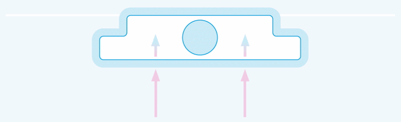 The primary and induced air mix inside the beam before being supplied back into the room through the side outlets. The airflow attaches to the ceiling surface through the Coanda effect, spreading evenly across the room and ensuring draught-free comfort. The result is a quiet, consistent, and energy-efficient indoor environment.