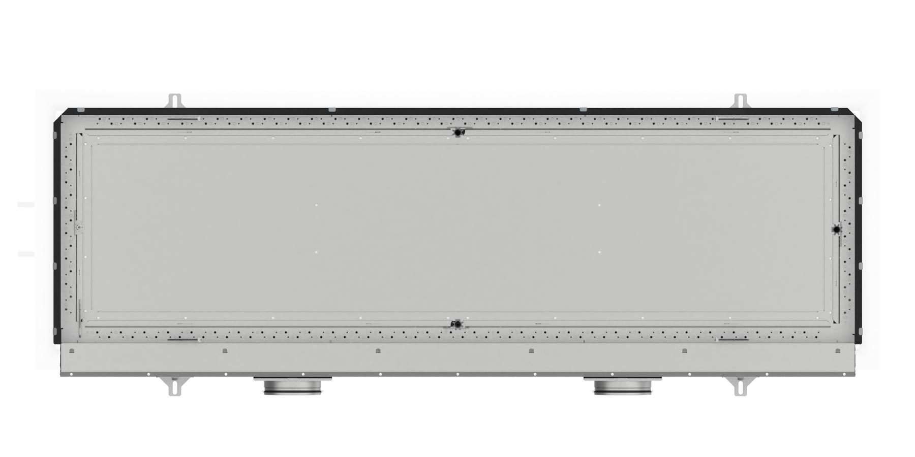 The plenum, made of galvanized steel, provides structural rigidity and stable suspension for the chilled beam. Its geometry is optimized to ensure uniform airflow and meet the performance requirements of each model. Primary air is connected through a standard circular duct spigot with airtight sealing.
