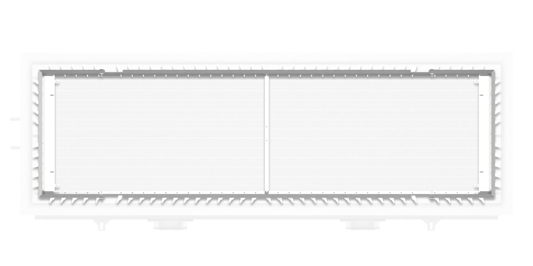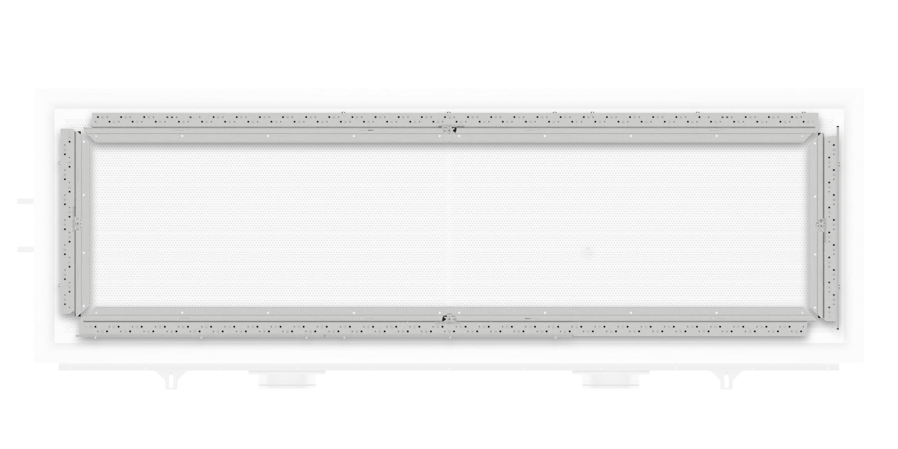 Available as an optional accessory when PremiAir or OptimAir chilled beams are installed in a suspended configuration. The Coanda frame functions as a virtual ceiling, allowing the supply air to attach to its surface and travel horizontally across the room. This extends the throw distance and improves overall air distribution within the space.