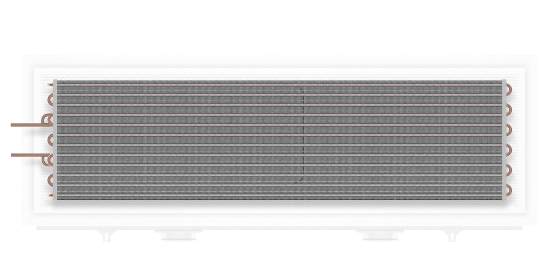 The heat exchanger transfers heat between the water circuit and the induced room air. Made of copper tubes with aluminum fins, it ensures efficient energy exchange and stable performance in both cooling and heating modes. Its geometry supports rapid thermal response, while the durable design offers long service life and easy maintenance when required.