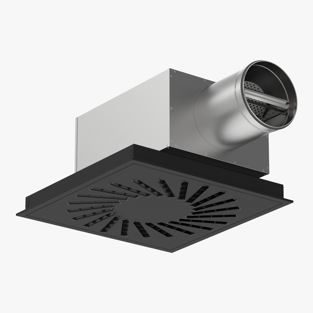 A PRNI raszteres vagy monolit álmennyezetbe süllyeszthető mennyezeti befúvó anemosztát, kör keresztmetszetű csatlakozással. A frontlapon körkörös elrendezésű befúvónyílások találhatók, melyekben kézzel állítható légterelő lamellák biztosítják az optimálisan irányított levegőelosztást.