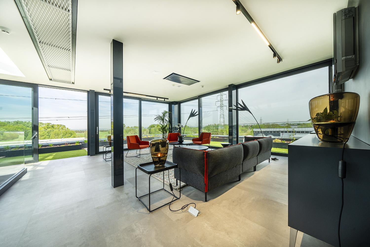 Budapesten, a Tura Group új székházában több mint 100 darab PremiAir klímagerenda gondoskodik a korszerű hűtésről és szellőzésről. A berendezések álmennyezeti és látszó kivitelben, RAL 9005 fekete színben kerültek leszállításra, majd beépítésre, elegánsan illeszkedve az épület sokrétű belső tereibe – irodákba, konferenciatermekbe, étkezőkbe, pihenőszobákba és szállásra alkalmas helyiségekbe. A látszó kialakítás kiemelt szerepet kapott, hiszen a Tura Csoport saját tevékenysége révén – monolit beton- és vasbeton szerkezetek kivitelezésével, valamint alumínium és üveg építőelemek gyártásával – az épület egyben referenciaként is szolgál. A Coanda kerettel és állítható fúvókákkal szállított PremiAir klímagerendák huzatmentes, komfortos beltéri környezetet biztosítanak, míg a tetőn telepített Airvent MultiPlex légkezelők gondoskodnak a megfelelően szabályozott, hűtött frisslevegőről.