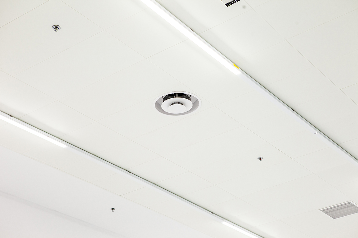 Az új, 1500 négyzetméteres gyártóterület sajátossága a csarnokokra jellemző nagy belmagasság, amelynek téli–nyári üzemű szellőztetése ipari befúvóelemekkel oldható meg. Javaslataink között szerepelt új fejlesztésünk, a termoelemmel működő NRA-T termék is. A termoelemes szabályozás előnye, hogy az NRA ipari befúvó terelőlemezeinek állása segédenergia nélkül változtatható annak függvényében, hogy épp milyen hőmérsékletű a légcsatornából érkező levegő. Az NRA-T terméknél alkalmazott termoelem működési tartománya 8 K (19–27 °C). Németországban végzett mérési eredményeink és az áramlásképek bemutatása után partnerünk örömmel fogadta el javaslatunkat, így a gyártóüzemi befúvás helyi szabályozása segédenergia nélkül valósulhatott meg.