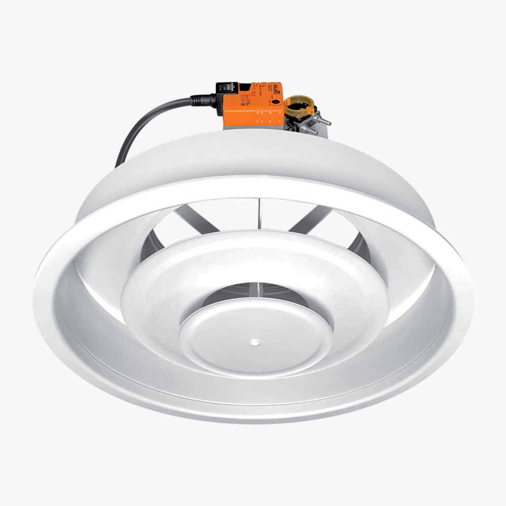 Az NRA egy állítható légterelőlemezekkel ellátott, téli–nyári mennyezeti befúvóelem, amely fokozatmentesen képes rövid vízszintes vagy hosszú függőleges légáramlás kialakítására. A köralakú befúvóelem belső részén elhelyezett vízszintes terelőlemezek állítása történhet kézi vezérléssel (NRA), Belimo LM-24 elektromos motorral (NRA-M), illetve termoelemes működtetéssel (NRA-T).