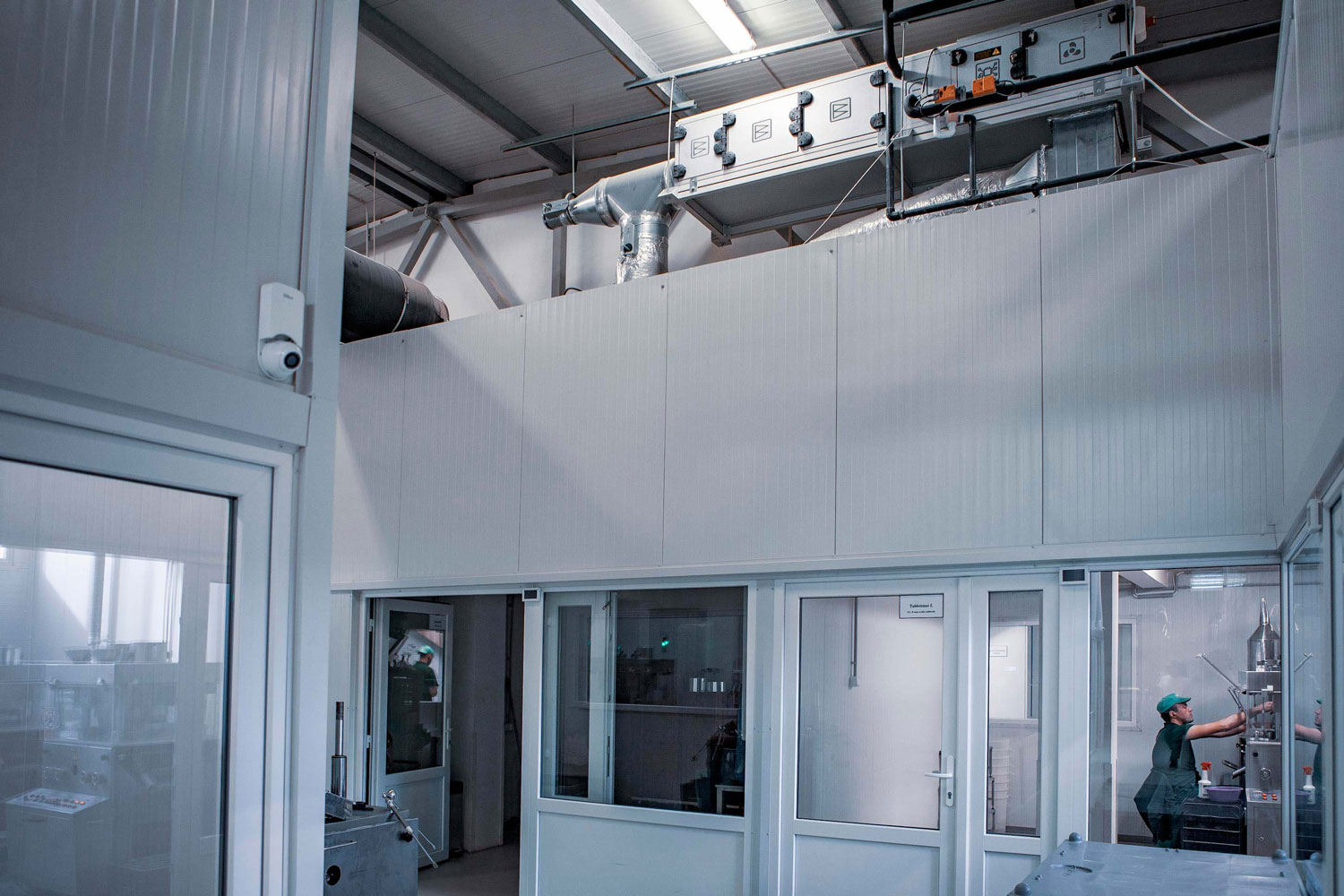 Egy vitamingyár szellőztető- és klimatizáló rendszerének korszerűsítésében közreműködtünk, ahol a tervezési fázistól kezdve részt vettünk a projekttámogatásban. Az Airvent feladata a csarnokban található különálló fülkék levegőjének kezelése volt. Első körben a csarnok négy szárítókabinjának igényeit szolgáltuk ki komplett gépészeti rendszerrel. A sikeres kivitelezést követően a második ütem még ennél is nagyobb feladatnak ígérkezett: 16 darab, egyenként 15 négyzetméteres kabin légtechnikai rendszerét szállítottuk le. Ez kabinonként egy SimPlex légkezelőgépet, folyadékhűtőt, valamint számos elárasztásos befúvóelemet jelentett. Valamennyi fülke légtechnikája teljesen automatizált, amelynek központi kommunikációs egysége a légkezelőgép CA-Plex vezérlője.