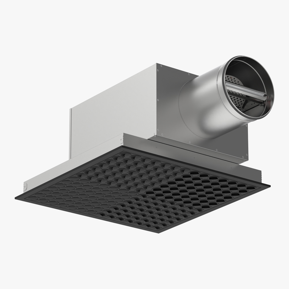 Nawiewnik sufitowy DRT/DRTI z obrotowymi dyszami najlepiej sprawdza się w instalacjach wentylacji komfortowej i zastosowaniach VAV. Urządzenie składa się z panelu przedniego z dyszami z tworzywa sztucznego, które można obracać o 360° oraz skrzynki tylnej z okrągłym przyłączem powietrza. DRT/DRTI dystrybuuje powietrze bez przeciągów, przy niskim poziomie hałasu. Prosty obrót aerodynamicznie zaprojektowanych dysz polipropylenowych zapewnia elastyczną dystrybucję powietrza w pionie i poziomie. Nawiewnik można podłączyć bezpośrednio do skrzynki rozprężnej TK.