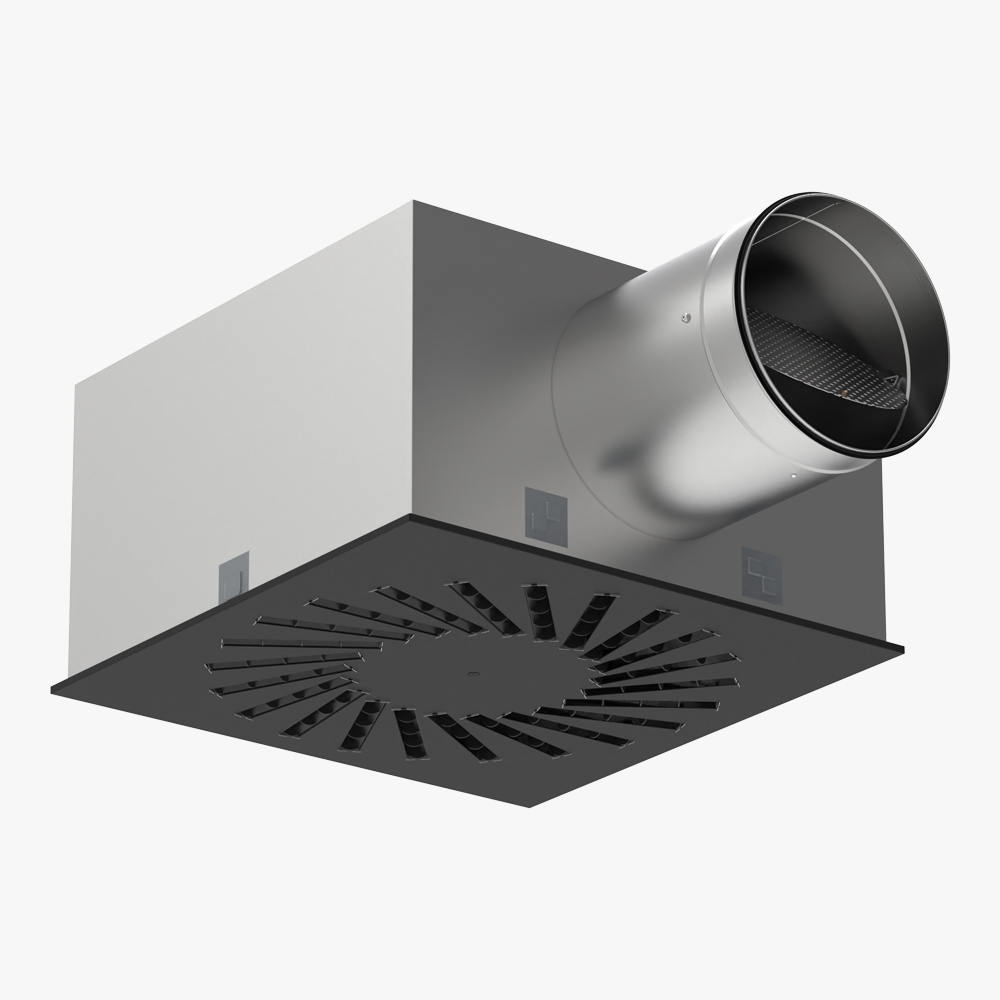 „Nawiewnik sufitowy PRNX to prostokątny panel przedni ze szczelinami w kształcie koncentrycznych okręgów. Za szczelinami znajdują się czarne deflektory z tworzywa sztucznego, które możnaręcznie regulować w zakresie do 180° (poziomo i pionowo). Szczeliny doprowadzają powietrze do pomieszczenia bez przeciągów i z niskim poziomem hałasu Nawiewniki PRNX nadają się również do wywiewu, dzięki czemu gwarantowany jest estetyczny wygląd pomieszczenia.W przypadku wywiewu deflektory należy usunąć.